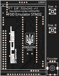 Эта версия эмулятора дисковода разработана на контроллере STM32 и оснащена крупным 2,8″ TFT‑дисплеем. Поддерживает эмуляцию двух дисководов (A и B) одновременно, работа с образами TRD, а также может устанавливаться как с готовой отладочной платой STM32, так и на дискретных компонентах — кнопки и энкодер могут располагаться на снимаемой плате github.com+2pcbway.com+2pcbway.com+2.